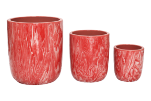 VT.20325 – This tall-shaped pot is crafted from brown clay and coated with a red reactive glaze that creates artistic, natural flowing patterns. The glaze displays dynamic shades of red and white, giving it a handcrafted charm, making it an ideal piece for enhancing both indoor and outdoor spaces.