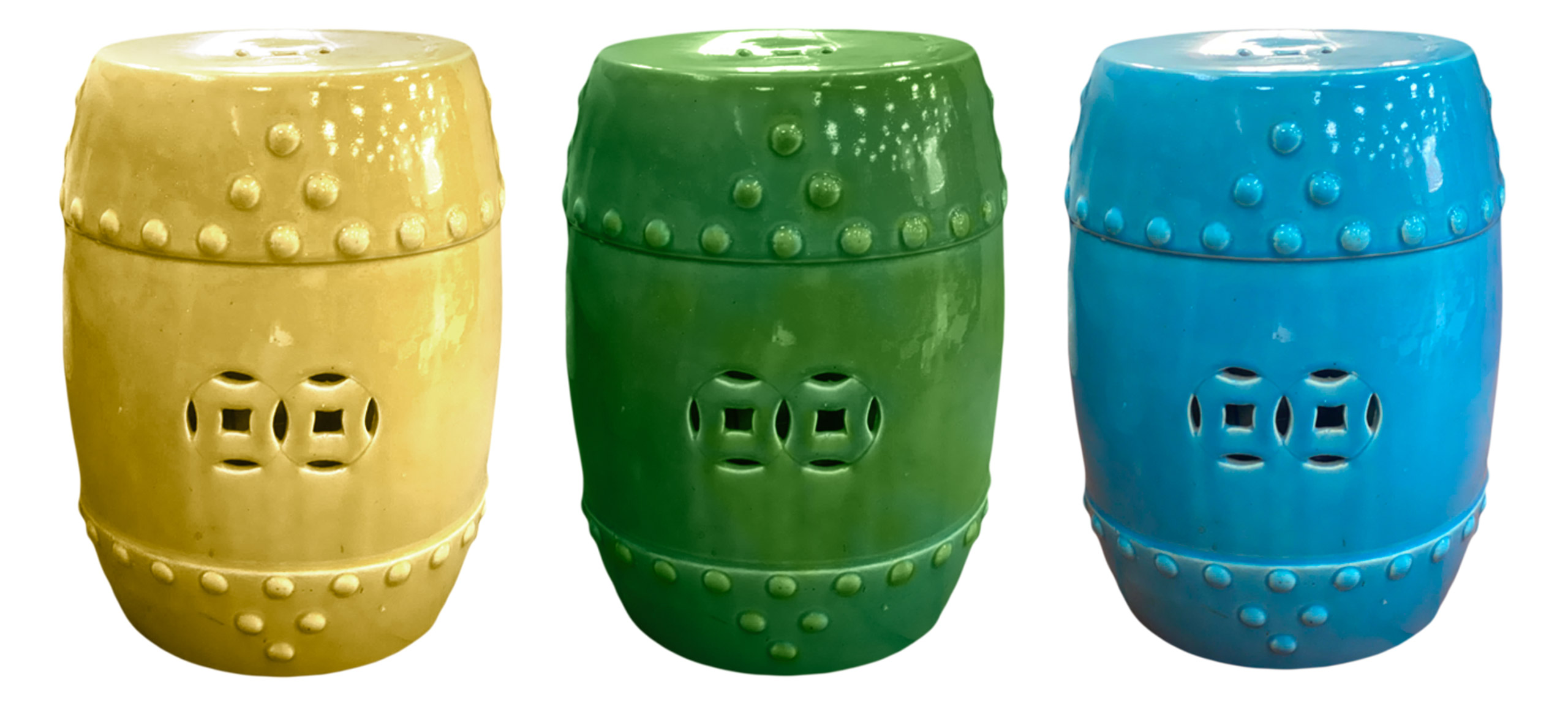 Available in a variety of vibrant colors and glaze finishes, each piece stands out as both a decorative accent and a practical item — ideal for use as a stool, side table, or plant stand.
