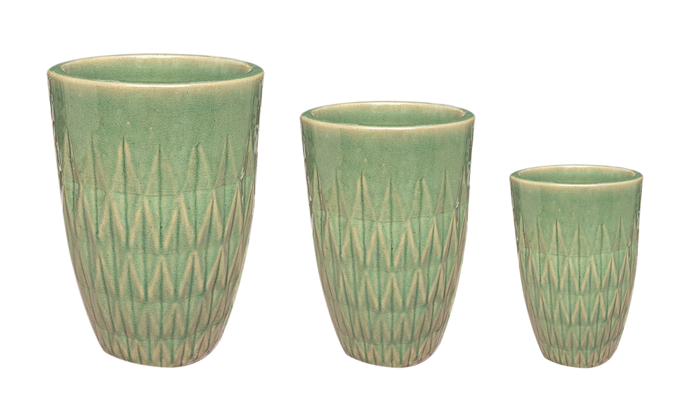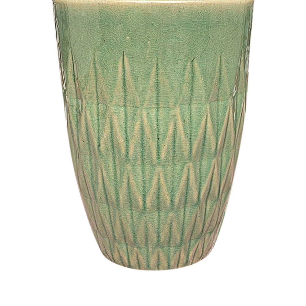 Nâng tầm không gian sống với VT.15790 – Đất sét nâu – Hình dáng cao. Sản phẩm tuyệt đẹp này sở hữu lớp men nứt rực rỡ với sắc xanh lá cây xô thơm dịu nhẹ, tạo nên vẻ ngoài cổ điển và kết cấu tự nhiên. Bên ngoài được trang trí bằng họa tiết kim cương hình học tinh xảo, mang đến vẻ đẹp hiện đại nhưng không kém phần sang trọng. Hoàn hảo để trưng bày những cây nhỏ, thảo mộc hoặc cây mọng nước yêu thích của bạn, chậu cây này kết hợp khéo léo giữa sự tinh tế và phong cách, mang đến nét thanh lịch mộc mạc cho bất kỳ mặt bàn, kệ hay bệ cửa sổ nào.