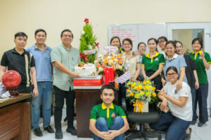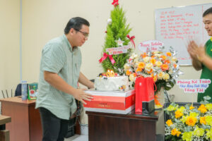 Tập thể CBNV chụp cùng anh Nguyễn Huỳnh Thiên Phúc – Giám đốc công ty nhân ngày sinh nhật