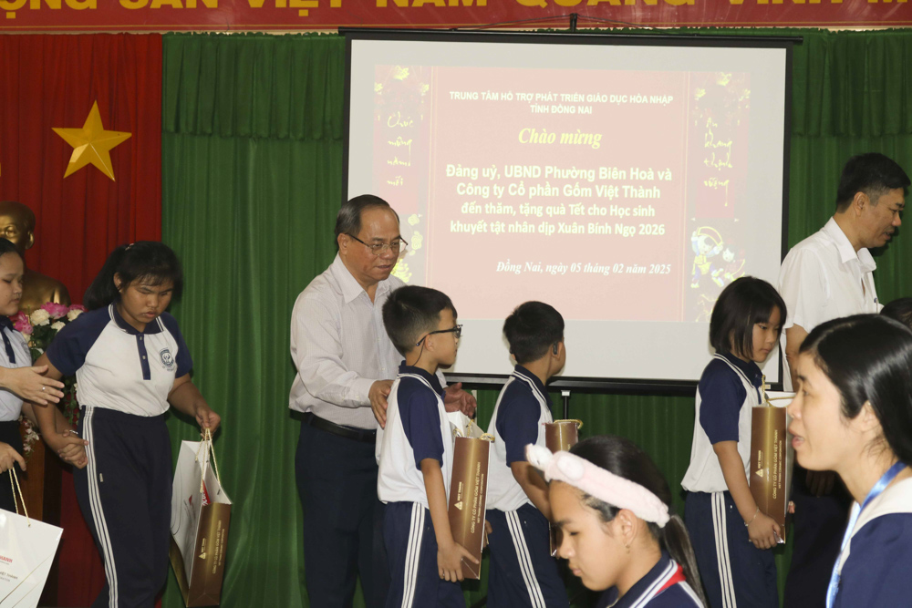 Ngay từ sáng sớm, đoàn thiện nguyện của Gốm Việt Thành và đại diện UBND Phường đã có mặt để chuẩn bị những phần quà ý nghĩa. Tại chương trình, Ban Tổ chức đã trao 271 phần quà Tết cho các em học sinh khuyết tật với tổng trị giá 36.715.000 đồng. Những phần quà tuy giá trị không lớn nhưng mang ý nghĩa nhân văn sâu sắc, thể hiện sự quan tâm, sẻ chia của doanh nghiệp và chính quyền địa phương đối với các những hoàn cảnh khó khăn và khiếm khuyết trong xã hội.