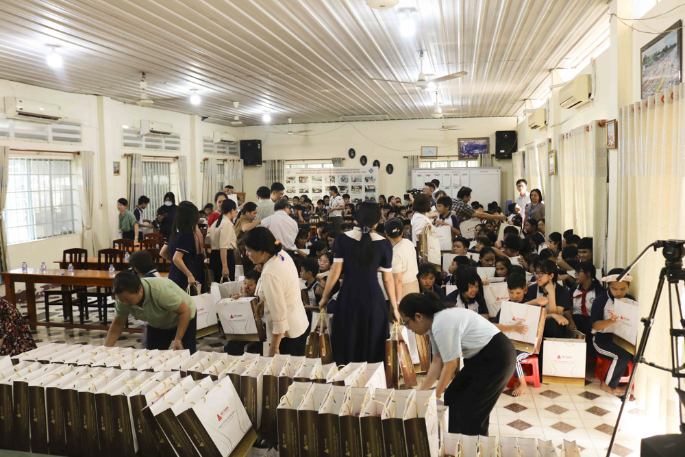 Mỗi suất quà không chỉ bao gồm các nhu yếu phẩm thiết yếu cho ngày Tết mà còn có những bao lì xì đỏ thắm, gửi gắm hy vọng về một năm mới bình an, khỏe mạnh cho các em.